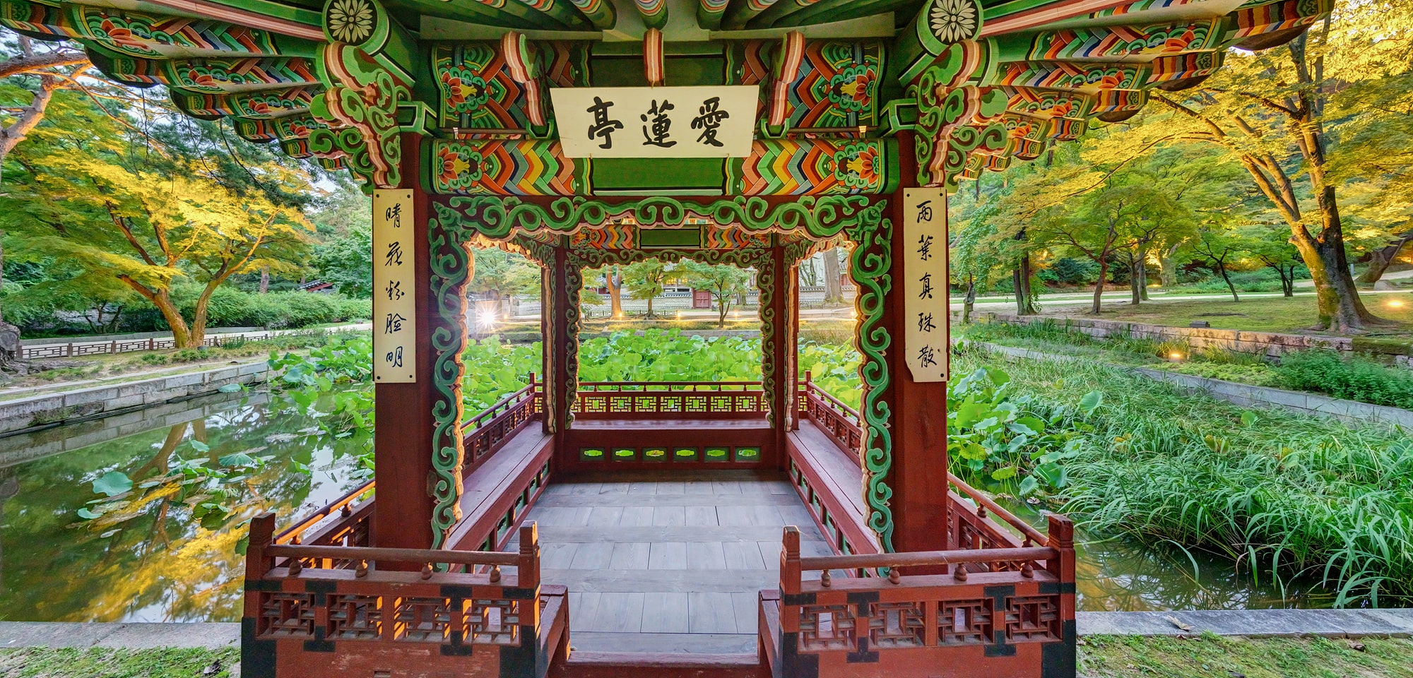 6. 상량전 : 낙선재 후원에 있는 육각형 누각으로 '시원한 곳에 오르다"라는 뜻을 가지고 있습니다. 은은한 달빛 아래에서 도심의 야경과 어우러진 대금의 청아한 소리를 들을 수 있습니다.